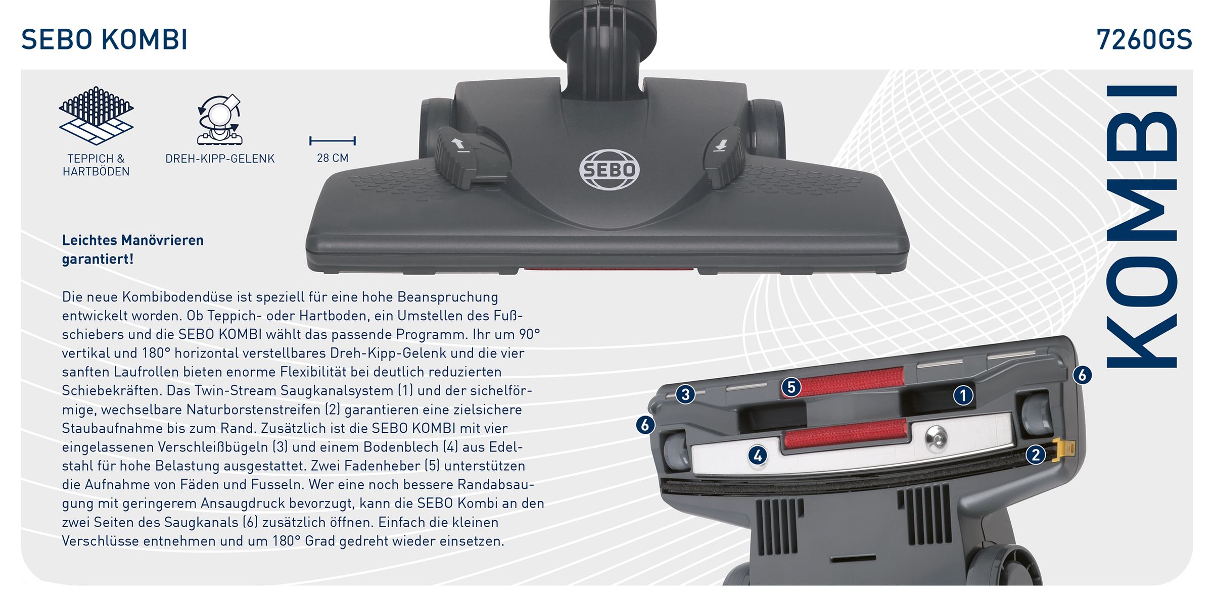 Der SEBO DART 1 ist serienmäßig mit einem einzigartigen Dreh-Kipp-Gelenk und integrierter Schlauchdüse ausgestattet und setzt als neuer Bürststaubsauger-Profi, nicht nur im Bereich modernster Technik, neue Maßstäbe.